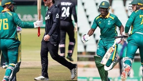 New Zealand vs South Africa ODI: वनडे क्रिकेट का ब्लॉकबस्टर शो साउथ अफ्रीका और न्यूजीलैंड के मैच में देखने को मिला. इस मैच में चौके-छ्क्कों की बारिश हुई. साउथ अफ्रीका की ए टीम के प्लेयर जॉर्डन हरमन (Jordan Hermann) और न्यूजीलैंड ए के खिलाड़ी डेल फिलिप्स (Dale Phillips) ने शानदार सेंचुरी ठोकी. दोनों टीमों के खिलाड़ियों ने गेंदबाजों की खूब पिटाई की. इस मैच में कुल मिलाकर 650 से ज्यादा रन बन गए. ये ODI दोनों देशों की ए टीमों के बीच खेला गया.