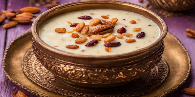 खीर में दूध और मेवे मौजूद होते हैं, जिससे स्किन ग्लोइंग और बालों को मजबूत बनाते हैं। दूध में कैल्शियम और प्रोटीन त्वचा को पोषण प्रदान करता है। मेवों में मौजूद ओमेगा-3 फैटी एसिड और विटामिन ई त्वचा को नमी और बालों को मजबूत बनाता है।